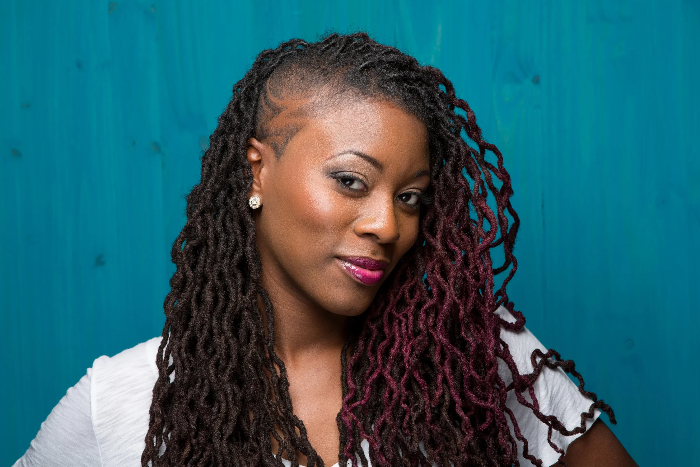 My regimen is pretty simplistic. My hair is maintained once a month by my loctician. After two weeks, I typically change up the style. Throughout the month I oil my scalp with an oil mixture and apply coconut oil to the locs itself. Locs are extremely versatile contrary to what some people believe. Some of my favorite styles include curls, braids/braid-outs and loc knots. The most extreme thing I have done with my hair to date is shaving the right side, which I absolutely LOVE! In a nutshell my hair is fly, dope, unique and all me! Each loc is distinctive in its own right (…and yes I have a favorite loc, lol). Natural hair is sexy…Dare to be different.
