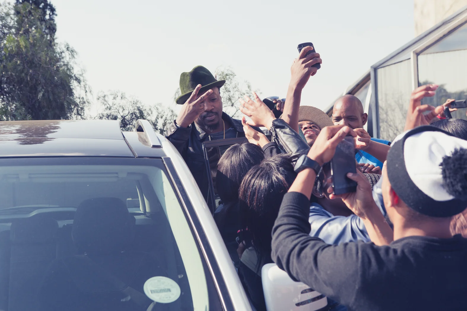 Anthony Hamilton is swarmed by fans after in interview in South Africa